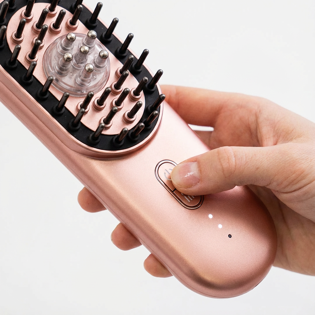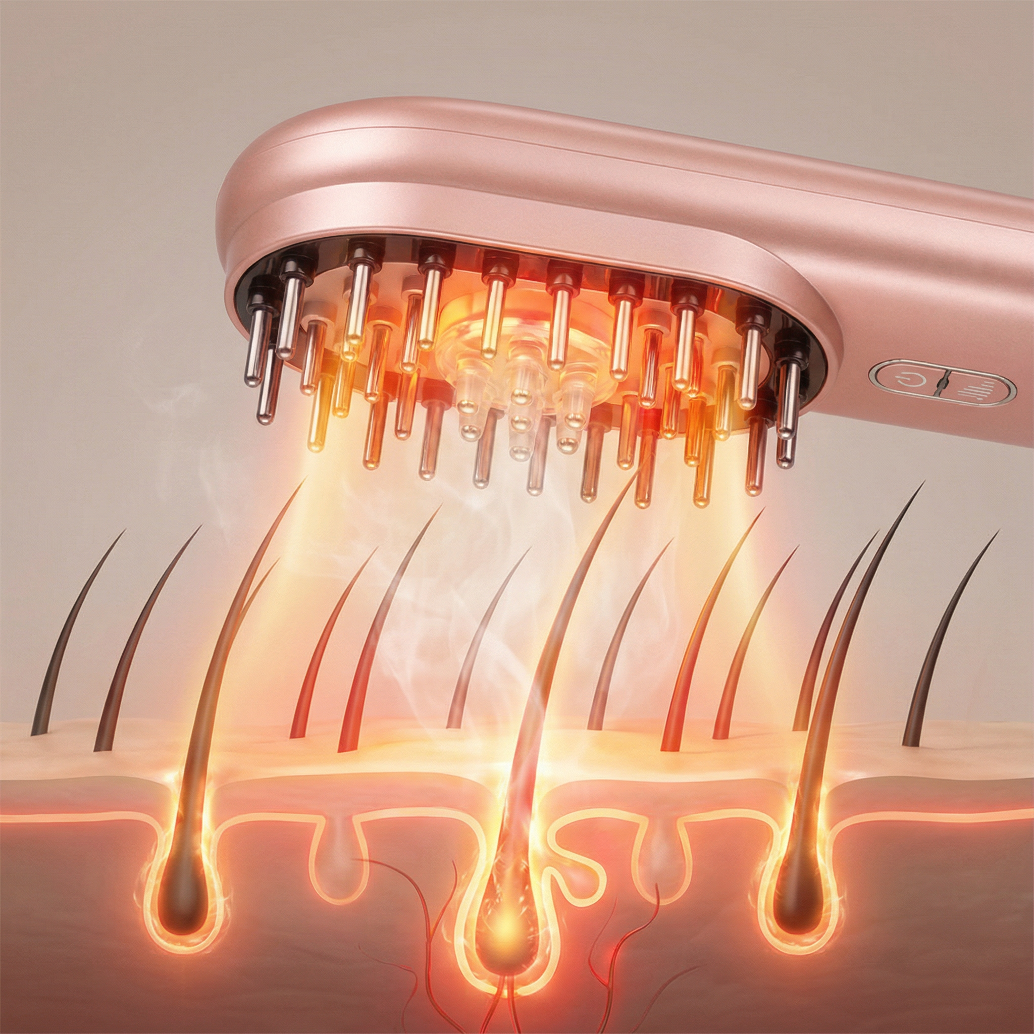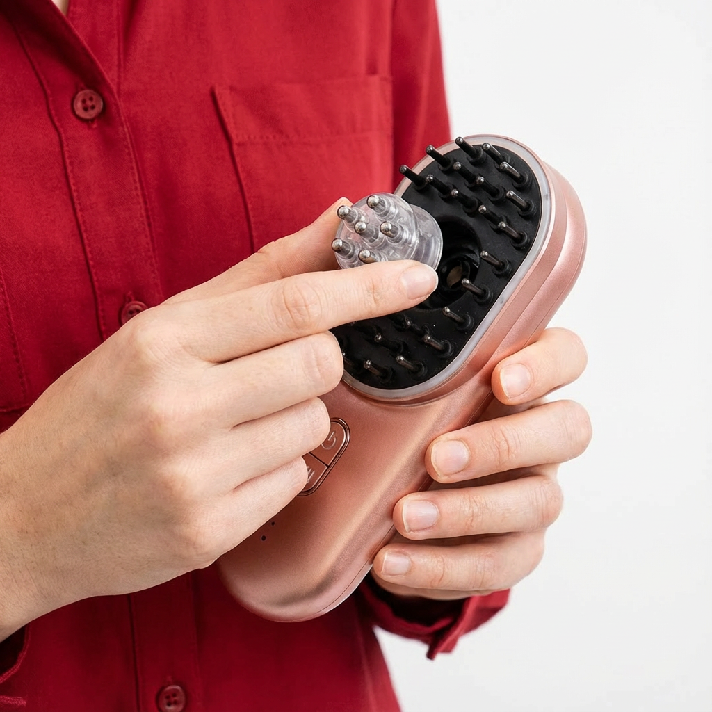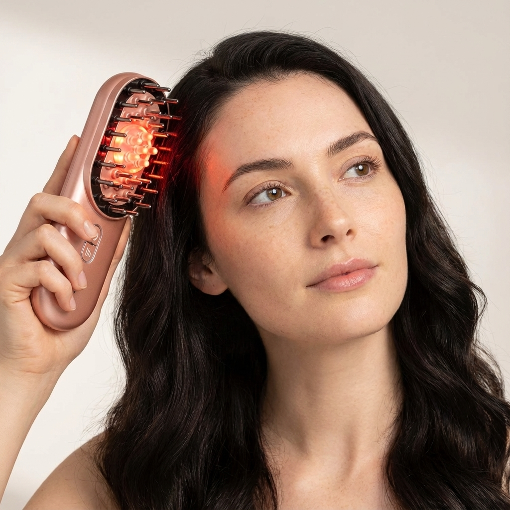 Es vereint vier wissenschaftlich erprobte Technologien – Rotlichttherapie, Mikrostimulation, Kopfhautmassage und thermische Wärme – um die Haarfollikel zu aktivieren und gesundes, kräftiges Haarwachstum zu fördern.