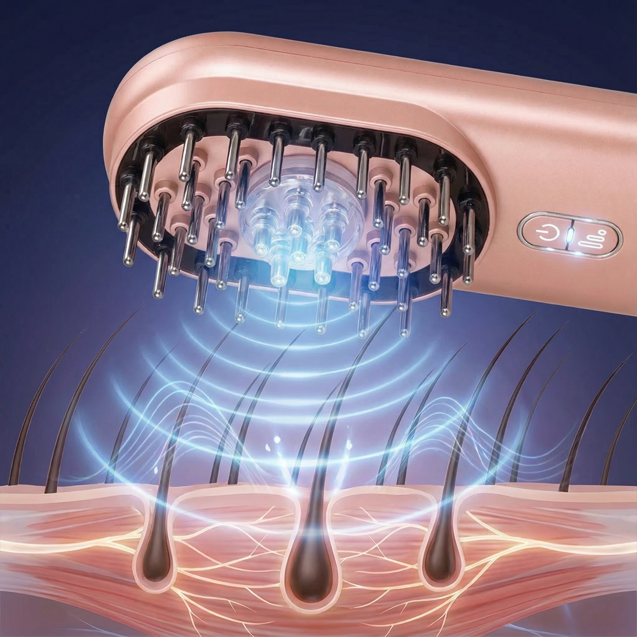 Eine sichere, nicht-invasive Energieform, die die Durchblutung steigert und inaktive Haarfollikel stimuliert, um neues Haarwachstum zu fördern.