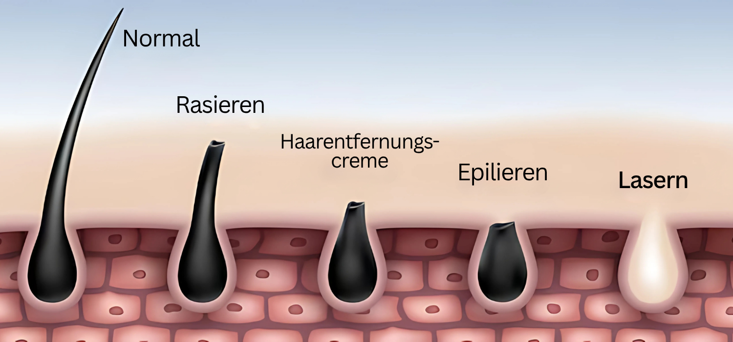 Tıraş: Saç kökü sağlam kalır. Saçlar hızla yeniden uzar ve keskin olmayan kesik uç nedeniyle genellikle daha kalın ve koyu görünür. Jiletin neden olduğu mikro yaralanmalar cildin yaşlı görünmesine neden olur. Sorun zaman zaman daha da kötüleşir.
